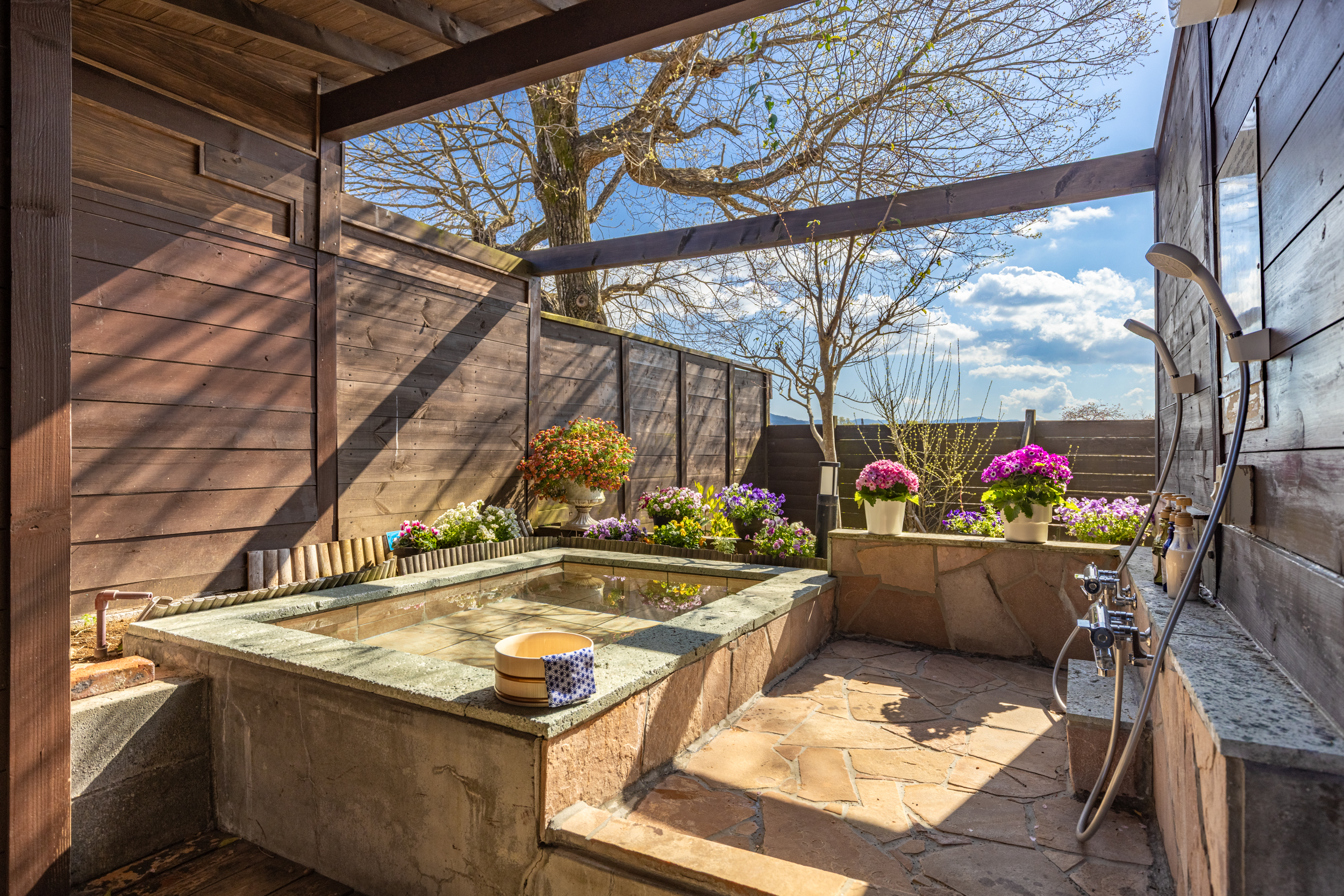 こだわりの全室専用露天風呂付きコテージ。高台にある静かな別荘地で、素敵な休日を。