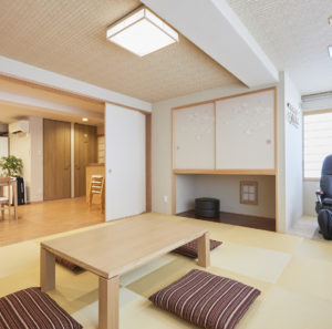コンドミニアム欅庵東京日本橋 9名用 和室とリビングとマッサージチェア