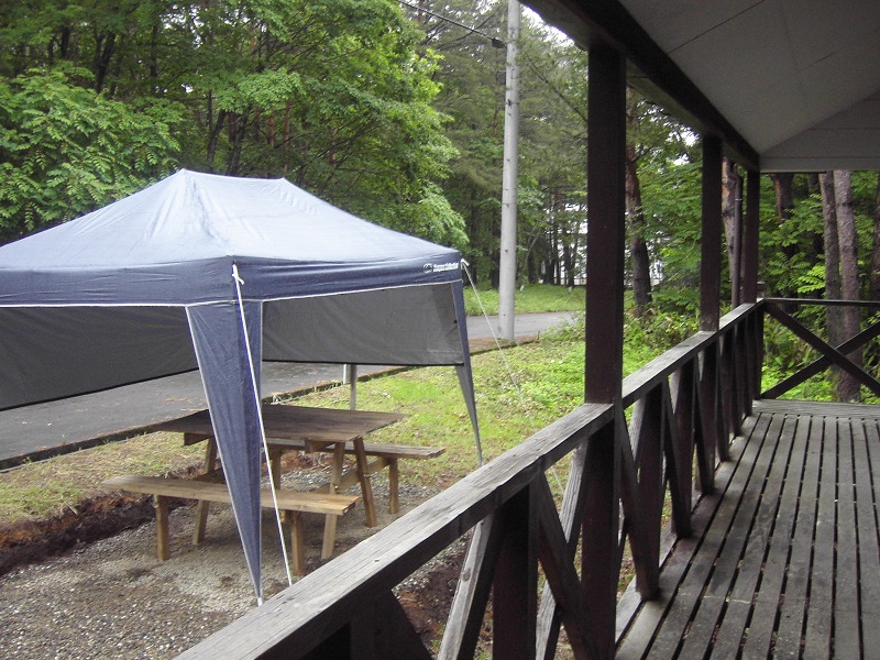 他のログハウスは、雨天時テントの貸し出しが可能です。
