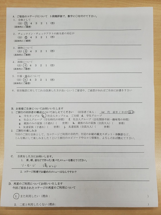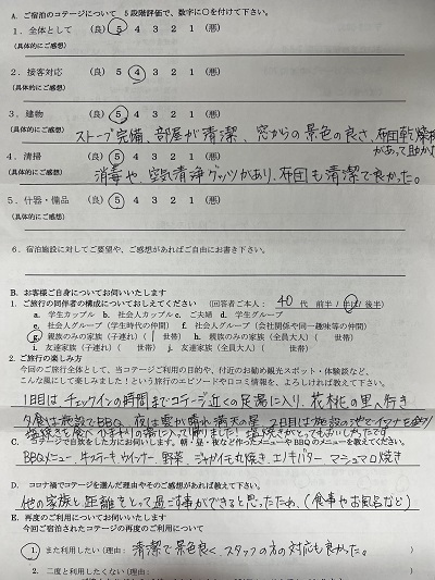 他の家族と距離をとって過ごす事ができると思ったため(食事やお風呂など)コテージを選びました。 清潔で景色よく、スタッフの方の対応も良かった。