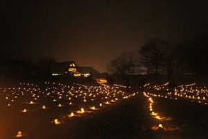 裏磐梯の雪まつりは、氷結したレンゲ沼の上を3,000本のキャンドルが灯されます。