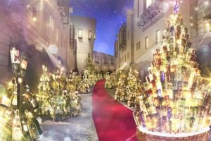 全長150mのメインストリート「ピーマン通り」では、珍しい12,000本のワインボトルで作られたオリジナルのクリスマスツリーを見ることができます。