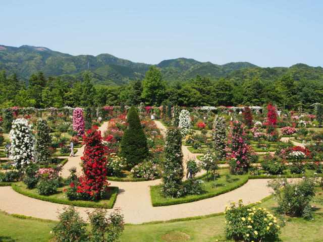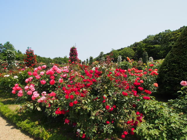 河津バガテル公園は、3ヘクタールの広さに、1,100種類・約6,000株ものバラが植栽されています!!