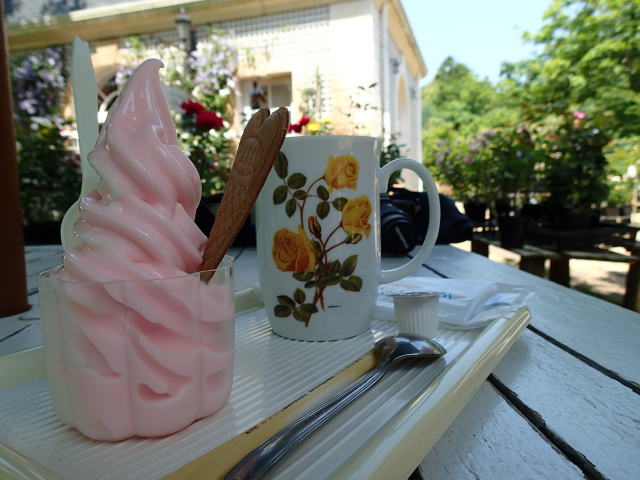 にあるカフェでは、大人気のバラソフトが販売されています♪