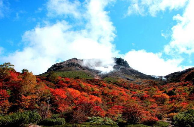 ロープウェイの車窓から見える紅葉は、ツツジやナナカマドが真っ赤に染まり、その光景はとても素敵です。