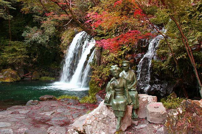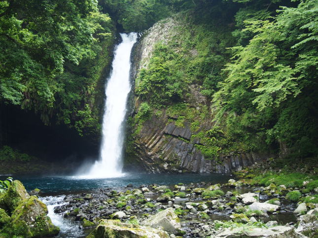 「伊豆の踊子」で有名な浄蓮の滝は、高さ25メートル・幅7メートルの大きさを持つ滝で、静かな雰囲気の中で、激しい音を立てて流れ落ちる滝の姿は迫力があります。